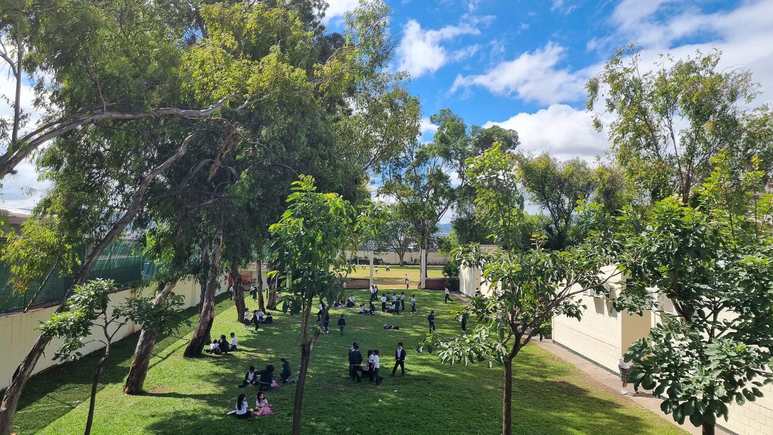Our students spend their days on a vibrant, green campus — complete with shaded play areas, gardens, study nooks, and open-air spaces for classes and conversations alike. Whether they’re running across our open air fields, sharing laughs under the trees, or walking past Plaza Pantera, students experience beauty, order, and pride in every corner.